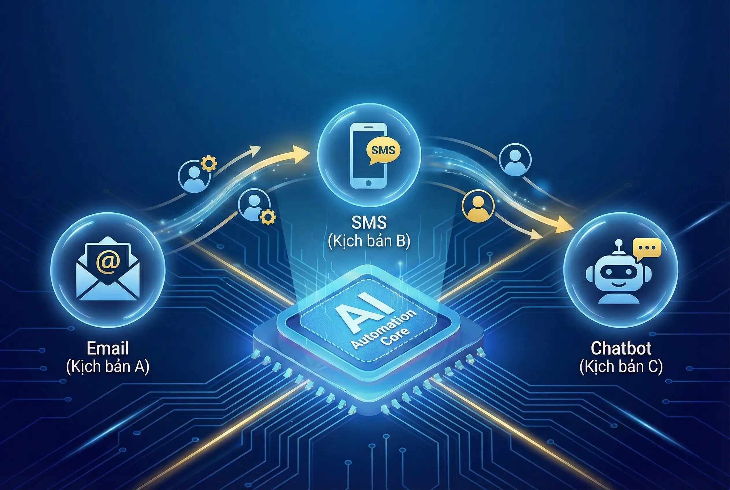 Kích hoạt email/SMS/chat tự động theo hành vi (tải tài liệu, mở email, không phản hồi…