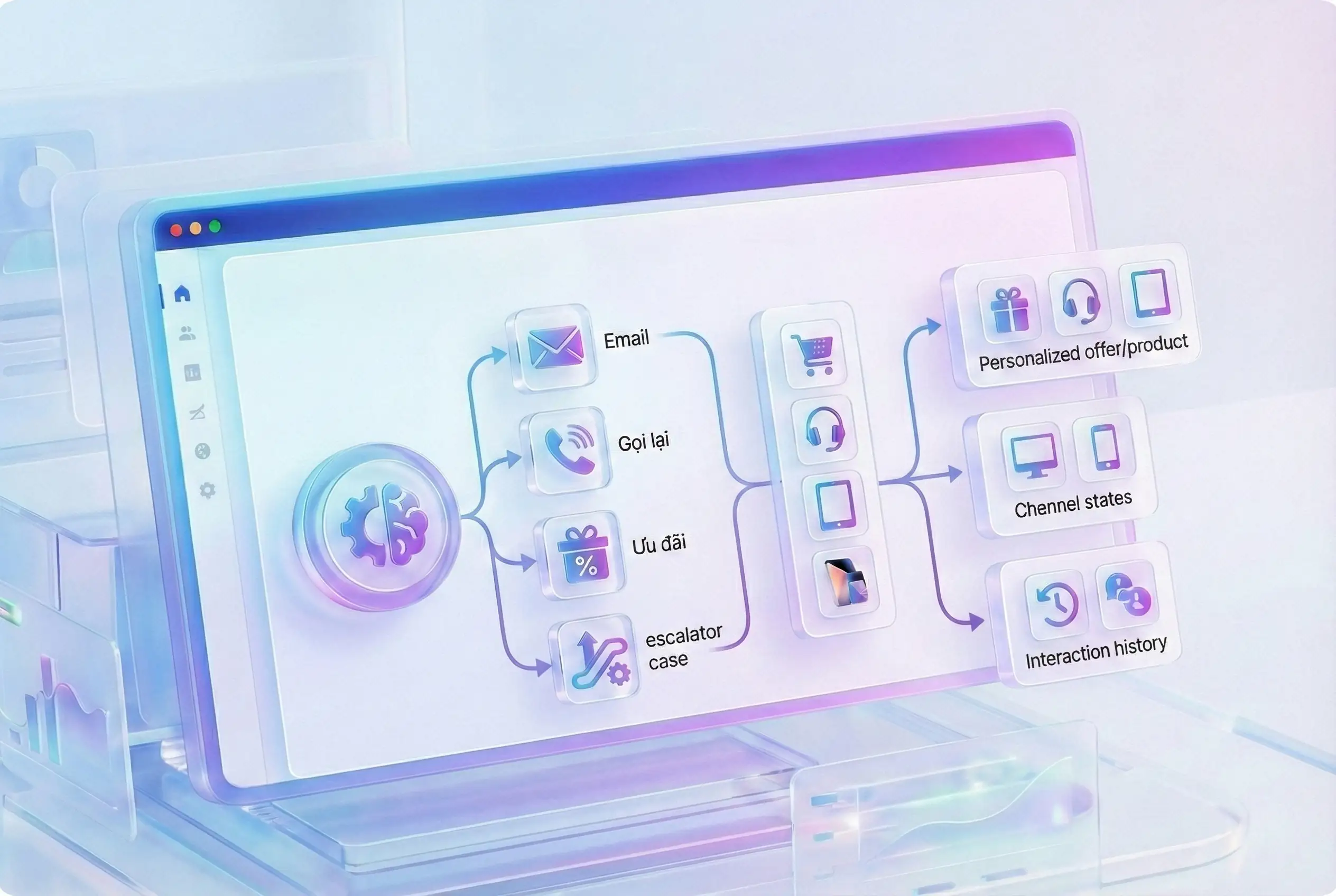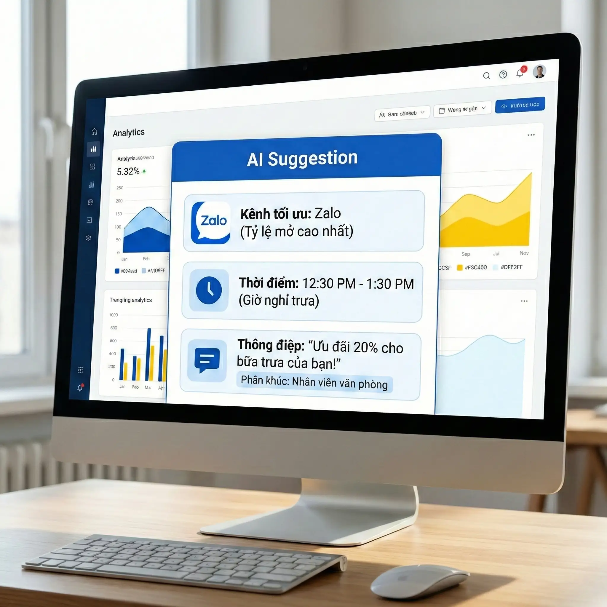 Từ lịch sử tương tác, hành vi đa kênh đến dữ liệu CDP và CRM, AI sẽ học hỏi và đưa ra gợi ý tự động – tức thì – theo ngữ cảnh, giúp tối ưu hiệu quả tiếp cận, chuyển đổi và chăm sóc khách hàng.