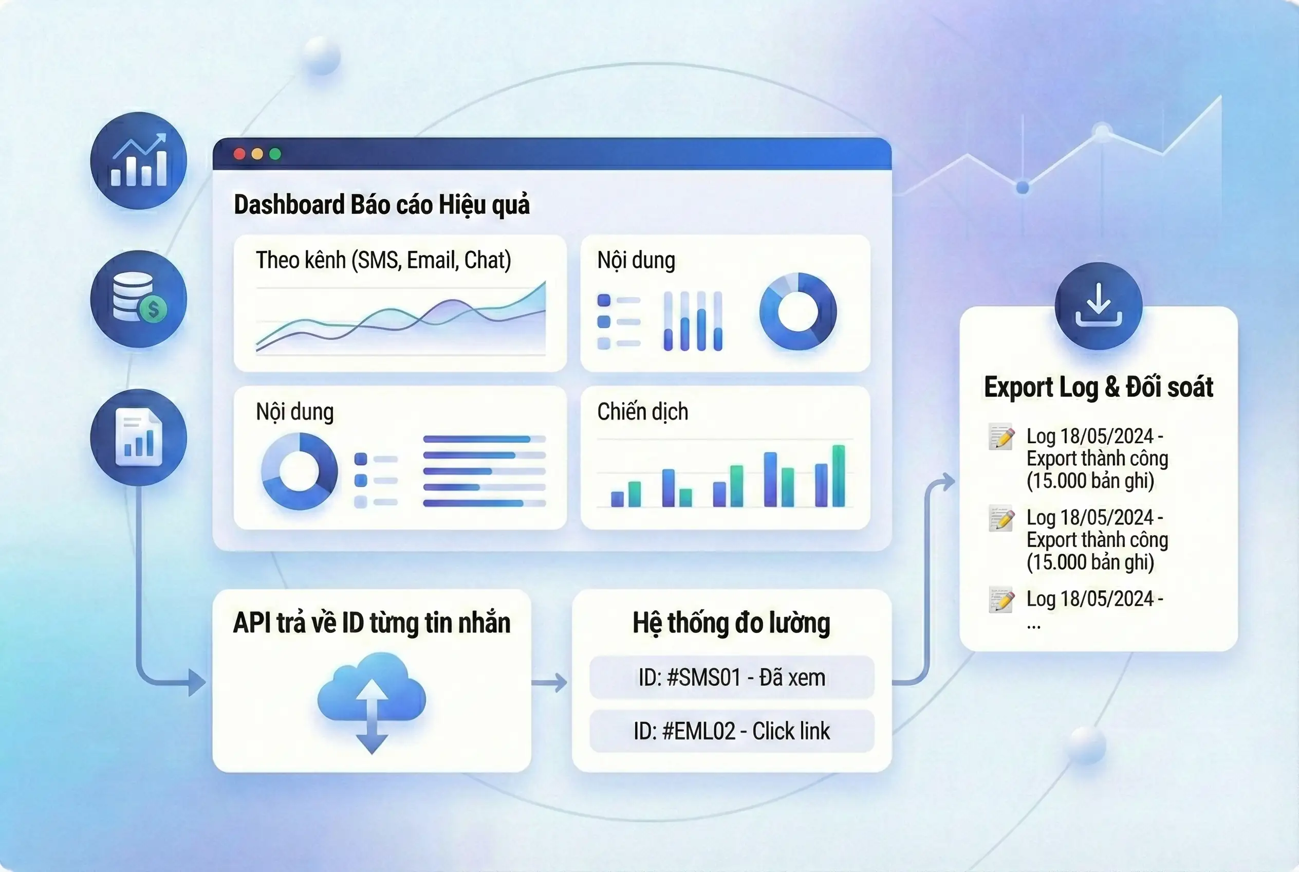 Base BS cung cấp bộ Email API, SMS API và Chat API dành cho doanh nghiệp muốn tự động gửi – nhận – theo dõi các tương tác khách hàng ngay từ hệ thống hiện có như CRM, ERP, website, mobile app, hoặc workflow nội bộ.